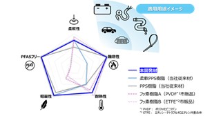 難燃性と高耐熱性を付与した柔軟PPS(ポリフェニレンサルファイド)樹脂を開発。