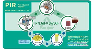 製造工程で発生したウレタンフォームの端材を再生原料化し、再生ウレタンフォームとして発泡するまでの一連の工程を開発。